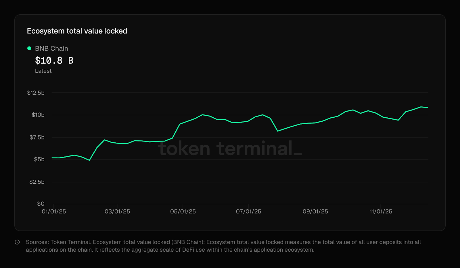 Real-world assets (RWA) also reached an important milestone. Total RWA value on BNB Chain surpassed $1.8 billion (at time of writing), supported by integrations from USYC and institutional players including BlackRock, Franklin Templeton, and VanEck.